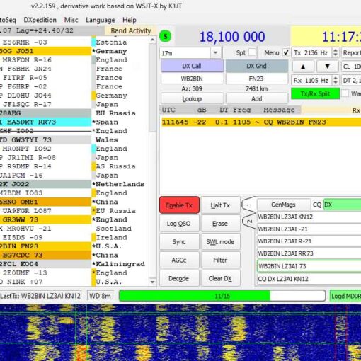 “W1ZZZ DE LZ2ZZZ GE (good evening) TKS (thank you) FER (for) UR (your) CALL (call) UR RST 589 589 NAME BOB BOB QTH LEEDS LEEDS HW CPY (how did you receive?) W1ZZZ DE LZ2ZZZ K”.
